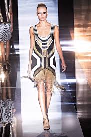 La colección de Gucci es un claro ejemplo de este nuevo tricolor neominnimal. Los tan aclamados trajes "flappers" son una mezcla de estampados geométricos blancos y negros con toques de oro, flecos a gogó y unos ojos ahumados bien negros. Pantalones blancos se combinan con tops y chaquetas con aplicaciones doradas. Toda una colección que nos lleva directamente al corazón de Manhattan, exactamente al Chrysler Building. Una colección que sirve como punto de partida a esta nueva tendencia tricolor.